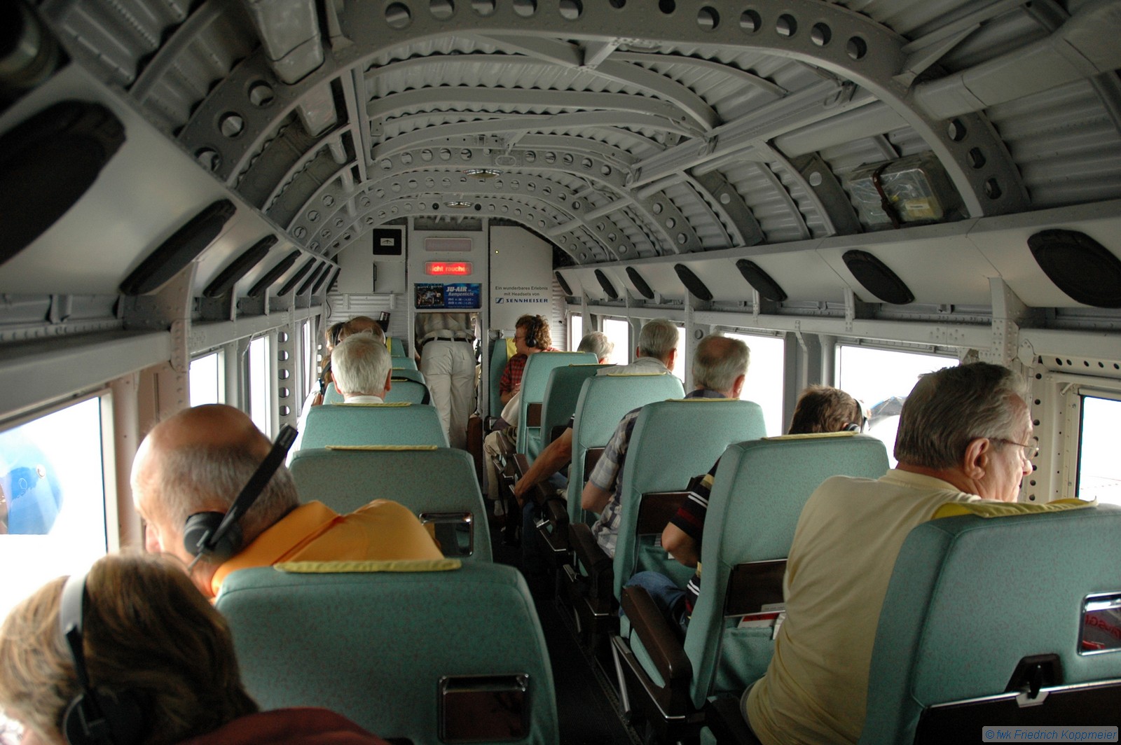 | de | en | 5 | Keinerlei Innenverkleidung an der Hülle... Was man sieht, ist die Außenhaut. Dafür gibt es für jeden Einzelsitze und Fensterplatz. So was Tolles gibt es nicht in einer 747. | |